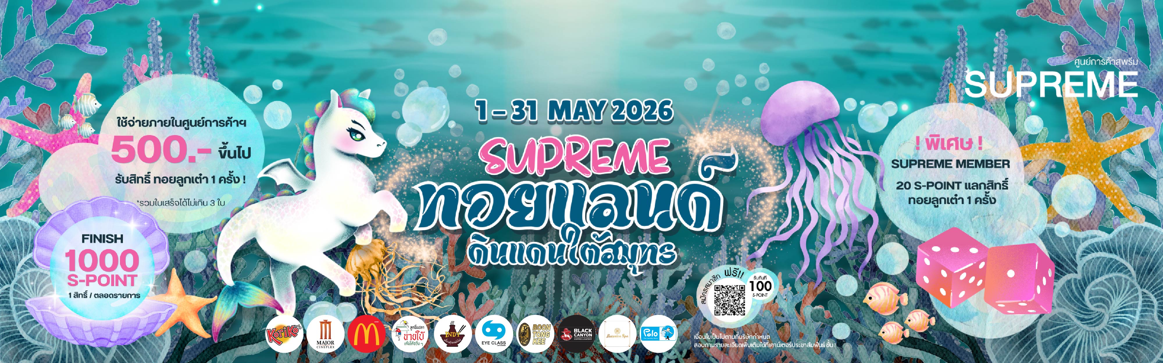 •ซื้อสินค้าหรือใช้บริการที่ศูนย์การค้าสุพรีม ทุก 25 บาท แลกรับ 1 พอยท์