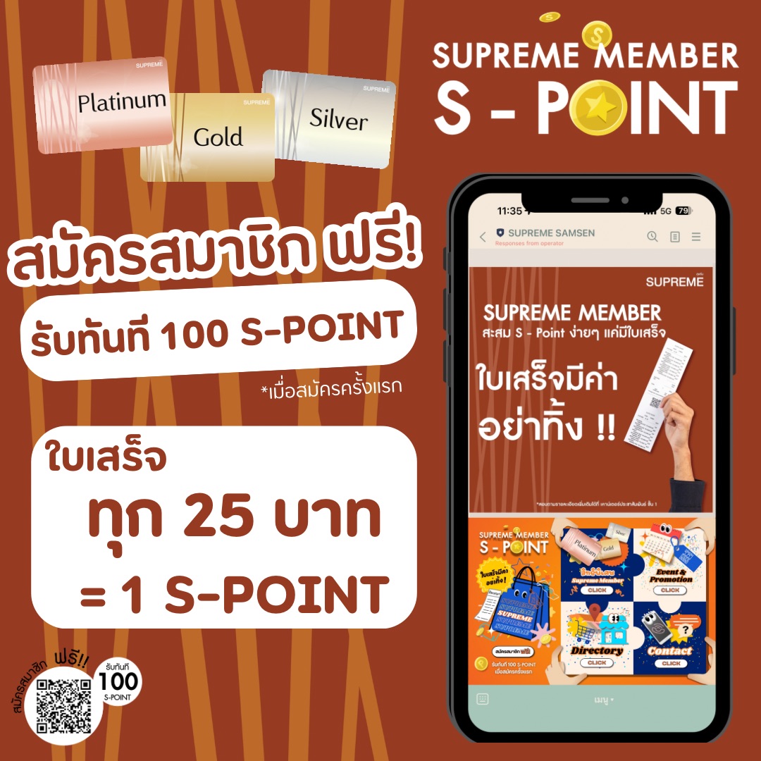 SUPREME MEMBER ใบเสร็จมีค่านำมาสะสมพอยท์ เพราะทุกการใช้จ่ายของคุณมีค่า สามารถนำใบเสร็จมาแลกพอยท์เพื่อรับสิทธิ์พิเศษมากมาย!!