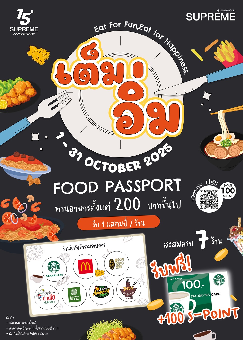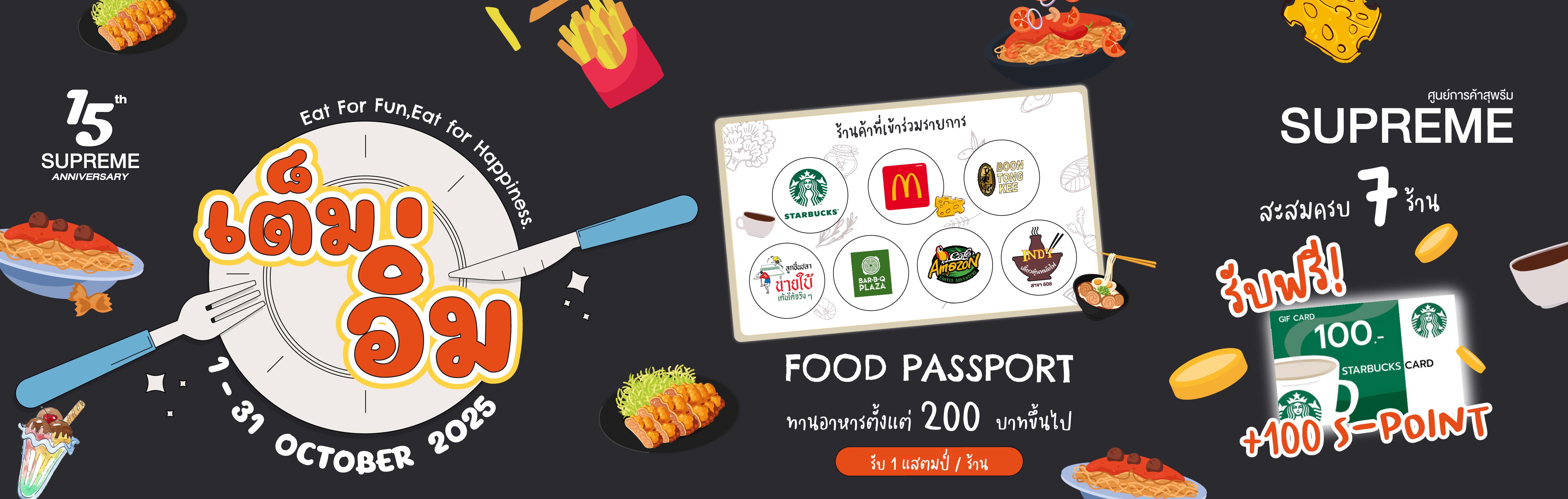 •ซื้อสินค้าหรือใช้บริการที่ศูนย์การค้าสุพรีม ทุก 25 บาท แลกรับ 1 พอยท์