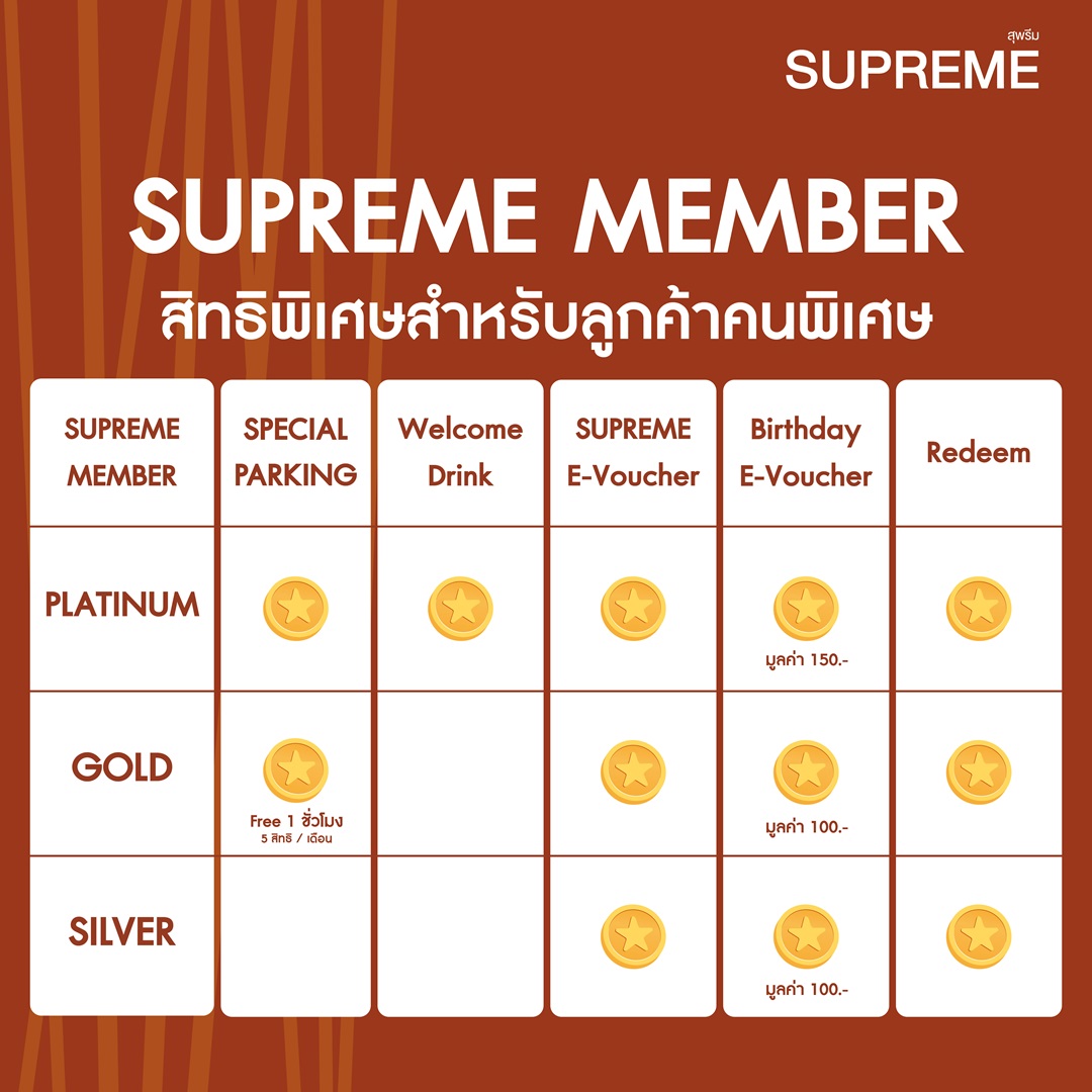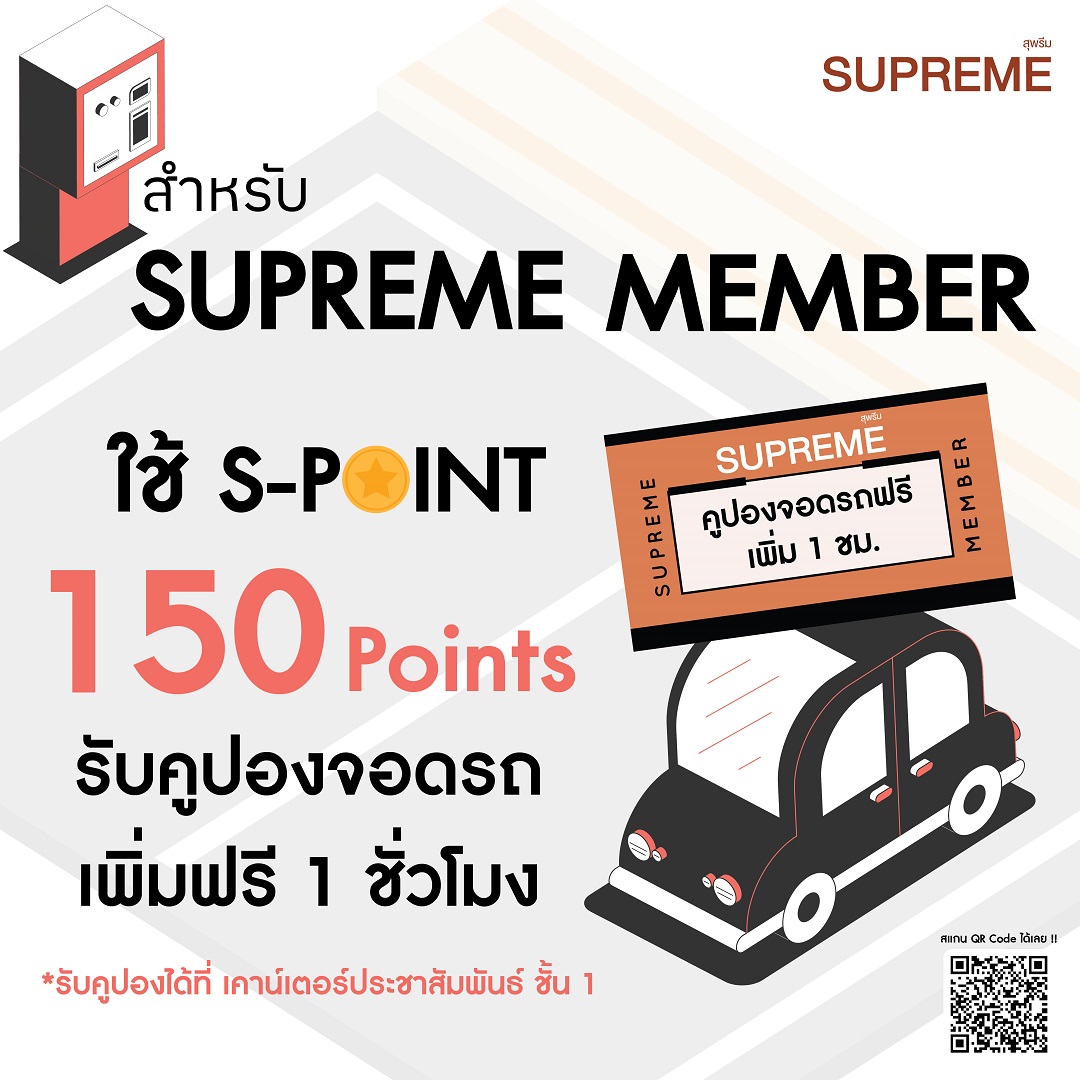 สมาชิก SUPREME MEMBER ระดับ GOLD แจ้งเรื่องสิทธิพิเศษ Coupon Parking รับคูปองจอดรถ เพิ่ม 1 ชม. ฟรี!
