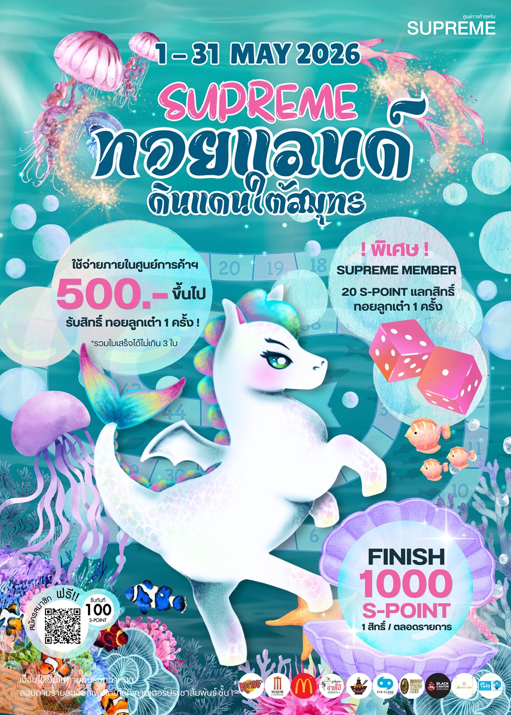•ซื้อสินค้าหรือใช้บริการที่ศูนย์การค้าสุพรีม ทุก 25 บาท แลกรับ 1 พอยท์