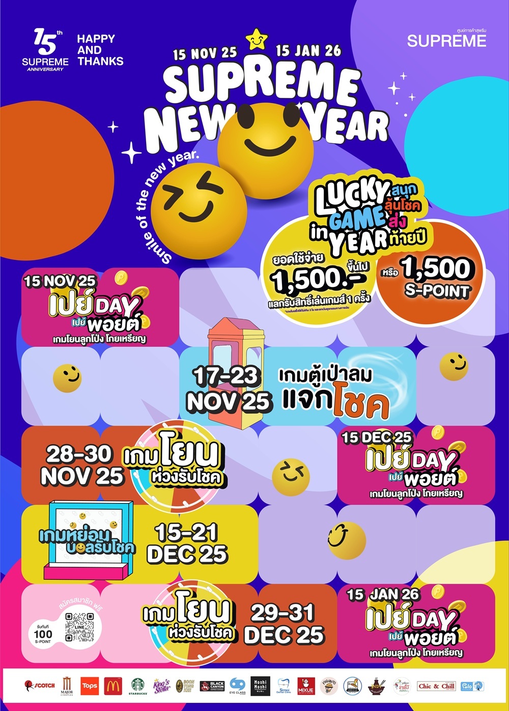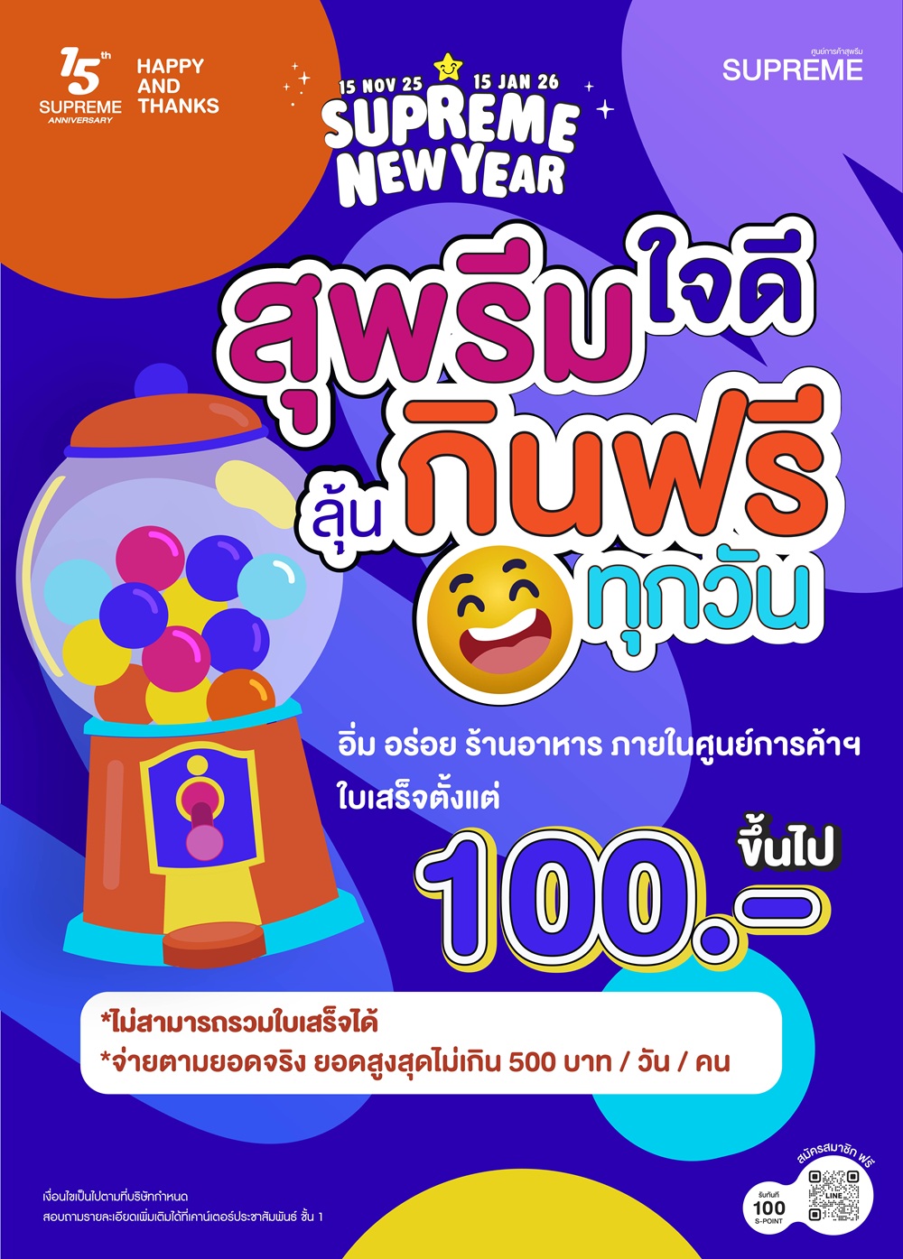 •ซื้อสินค้าหรือใช้บริการที่ศูนย์การค้าสุพรีม ทุก 25 บาท แลกรับ 1 พอยท์